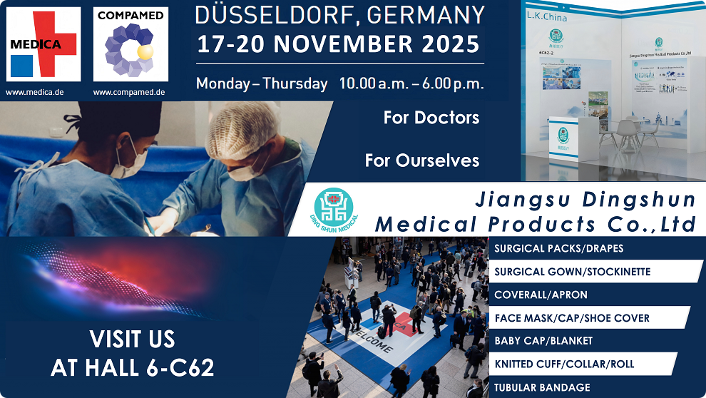 Jiangsu Dingshun Medical Products Co., Ltd. wurde 2002 gegründet und ist auf die Entwicklung und Produktion von medizinischen Einweg-Verbrauchsmaterialien spezialisiert. Beginnend mit Strickbündchen hat Dingshun Medical seine Produktpalette erweitert, um eine Vielzahl medizinischer Artikel abzudecken, wie z Trikots, OP-Packungen und Bandagen .